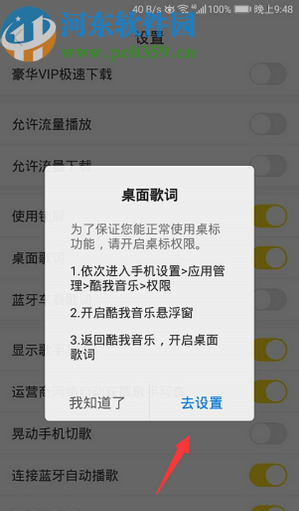 酷我音乐APP是一款可以在线听歌的手机应用,现在很多用户都喜欢在闲暇的时候播放一些自己喜欢的歌曲,手机就是比较常用的播放设备,很多用户播放音乐的时候都喜欢打开歌词跟着哼唱,那么就可以在酷狗音乐APP中开启桌面歌词功能了,开启之后我们在进入到其他应用界面时也是可以看到歌词的,这样使用起来会更加方便,介于还有一些用户不知道怎么开启这个桌面歌词功能,小编就来跟大家分享一下具体的操作方法吧,有需要的朋友不妨来看看这篇方法教程。