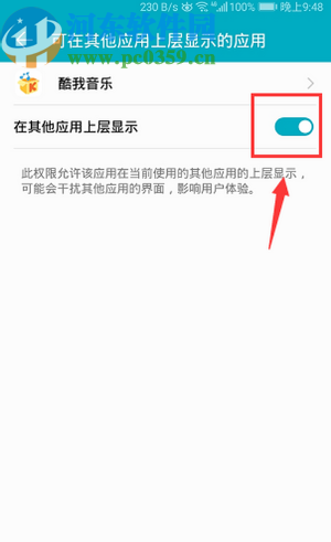 5.点击去设置之后跳转到下图所示的界面,我们打开“在其他应用上层显示”这个功能的开关就可以了。