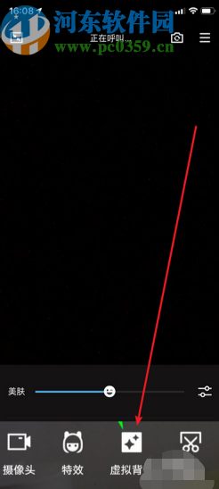3.点击这个三条横线图标之后手机界面下方就会出现一些功能图标了,其中就有虚拟背景这个功能,我们点击它。