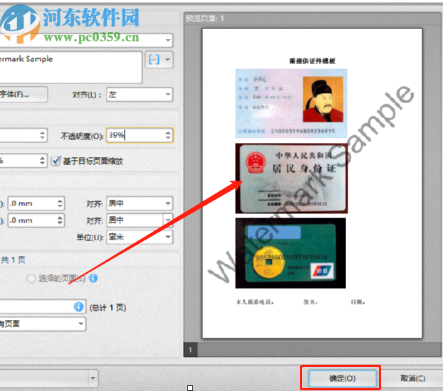 5.水印设置完成之后在界面的左边可以看到水印的预览情况,然后点击界面下方的确定按钮可以保存水印设置。
