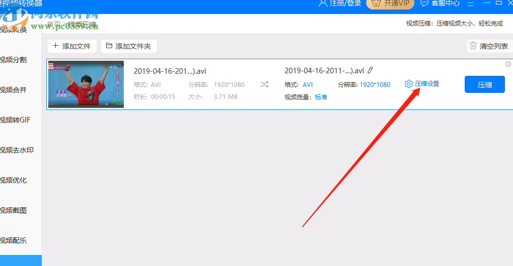 6.压缩设置完成之后,我们就可以回到主界面中点击视频列表后面的压缩这个功能按钮来开始压缩视频文件的操作了。