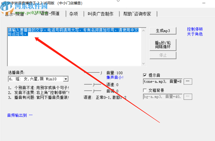 4.调节好语音参数之后,下一步就是点击界面中的生成MP3这个功能按钮,然后在出现的界面中设置重复播放的次数,再次点击生成MP3按钮。