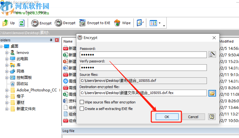5.最后我们在设置好保存位置之后,就可以在配置加密参数的界面中点击OK这个按钮来开始加密文件的操作了。