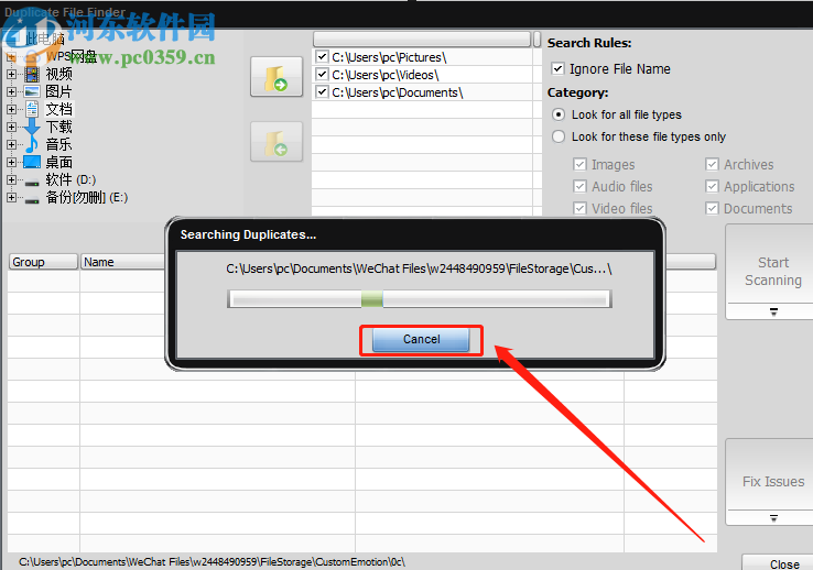 4.开始扫描之后在界面中会显示一个扫描进度给用户做参考,如果需要中断扫描的话可以点击Cancel按钮取消扫描。