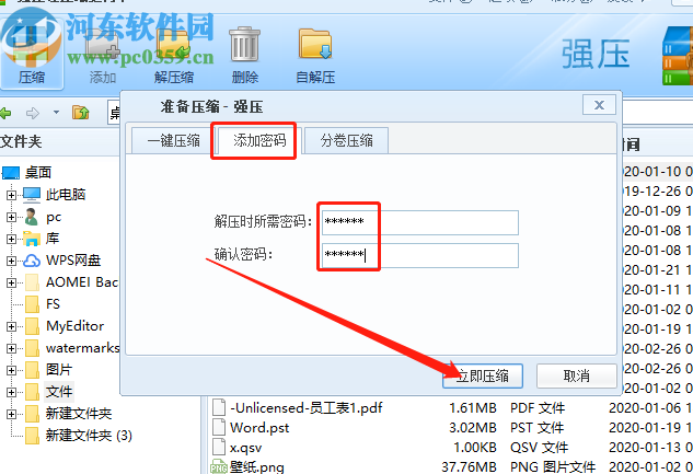 5.最后我们点击添加密码选项,切换到设置密码界面之后,在输入框中输入想要设置的密码再点击下方的立即压缩按钮就可以开始加密压缩文件了。