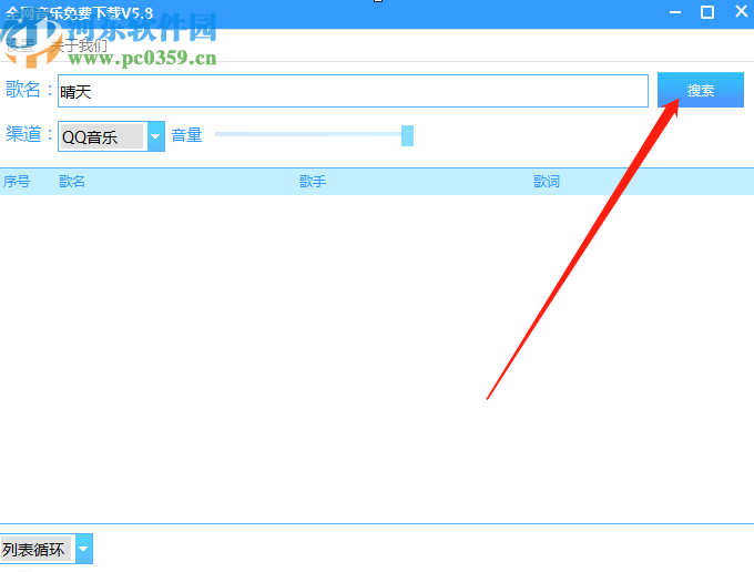 3.渠道也选择完成之后我们就可以点击界面右上角的搜索这个功能按钮来开始搜索所选渠道中的该歌曲了。