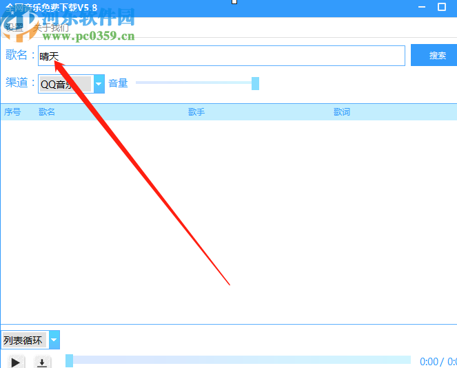 2.想要搜索下载的歌曲名称输入完成之后下一步在渠道这个选项中点击打开下拉列表,然后选择自己想要的搜索下载渠道。
