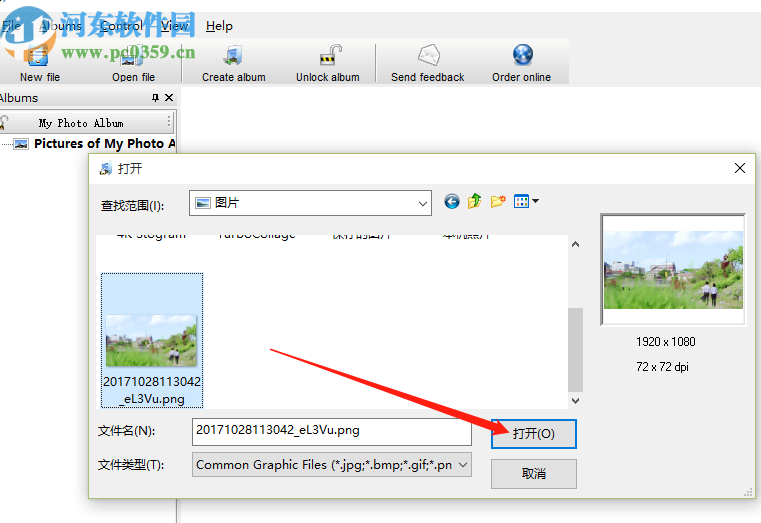 4.点击添加图标之后在出现的界面中我们选中要加密的文件之后点击打开按钮,之后图片就会加载到软件中了。