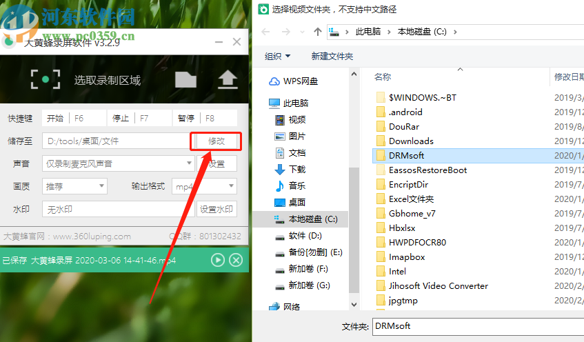 1.首先第一步我们打开软件之后先点击储存至选项后面的修改按钮,点击这个按钮之后可以更改录制视频的储存位置,需要注意的是软件不支持中文路径,所以用户选择的时候要避免使用中文路径。