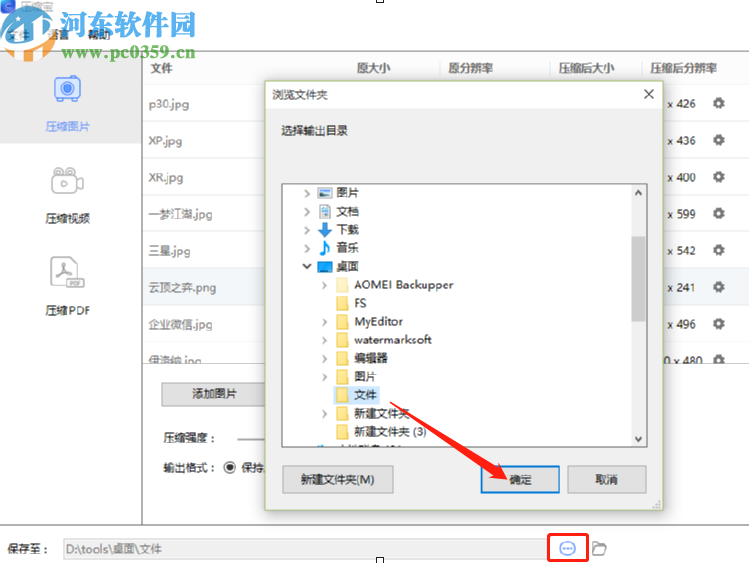5.选择完成之后下一步我们在下方的保存至这个选项的后面点击三点按钮,点击之后在出现的界面中选择文件压缩之后的输出储存路径。
