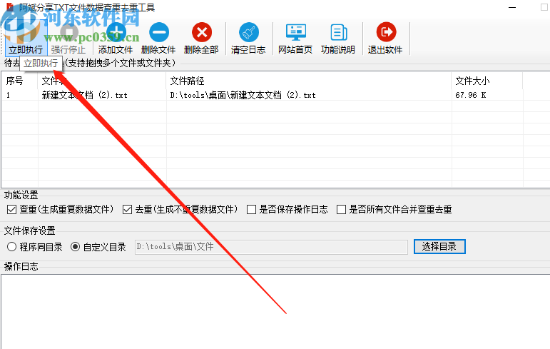 6.最后一步我们选择好文件的输出储存路径之后,点击界面左上角的立即执行这个功能按钮就可以开始执行查重去重操作了。
