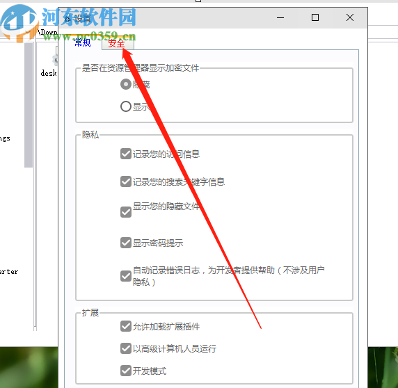 3.进入到软件的设置功能界面之后,我们将会看到下图所示的界面,然后我们点击界面中的安全选项卡切换到安全设置中。