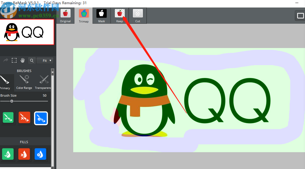 4.然后我们根据自己的需求用紫色区域来选择图片中不想要的位置,保留想要的内容,选取完成之后点击上方的Keep功能模块。