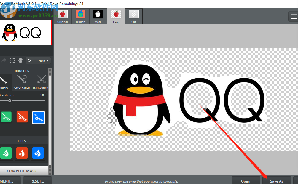 5.紧接着我们就可以看到被保留下来的需要抠取的位置了,如下图中所示,然后我们点击右下方的Save As这个按钮即可保存抠取的位置。