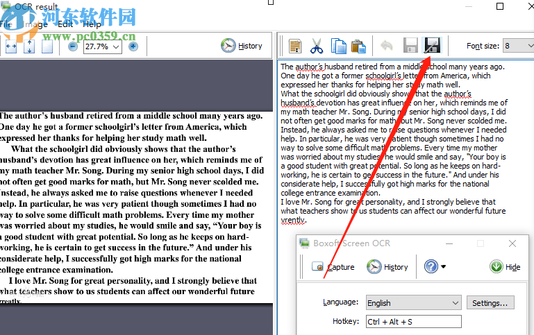4.紧接着我们点击界面上方的保存识别结果这个功能按钮即可保存识别出来的文字内容,如下图中所示。