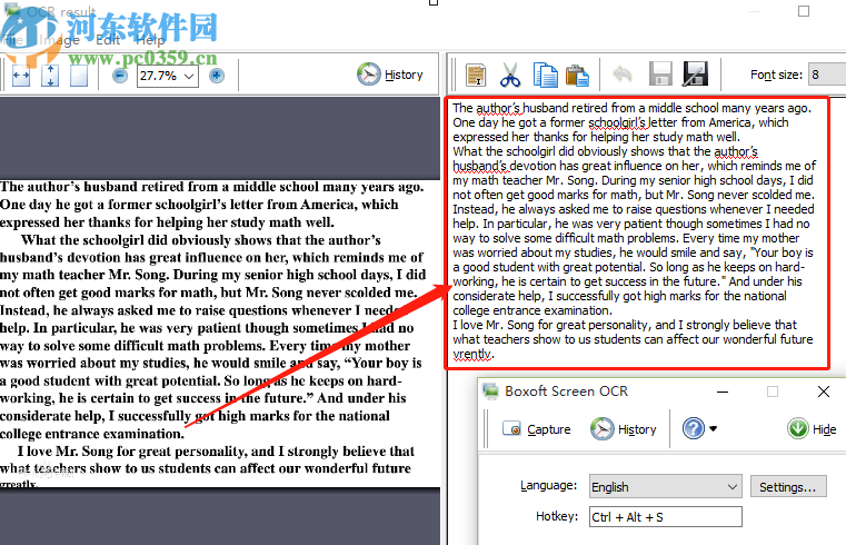 3.等到识别完成之后就会出现下图所示的界面了,我们可以看到识别出来的一些文字内容,不管是英文还是中文都是可以进行识别的。