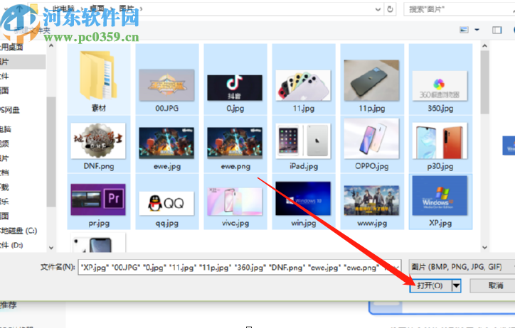 3.点击添加按钮之后在出现的选择文件界面中,我们就可以选中所有想要压缩的图片文件了,全部选中之后点击打开按钮。