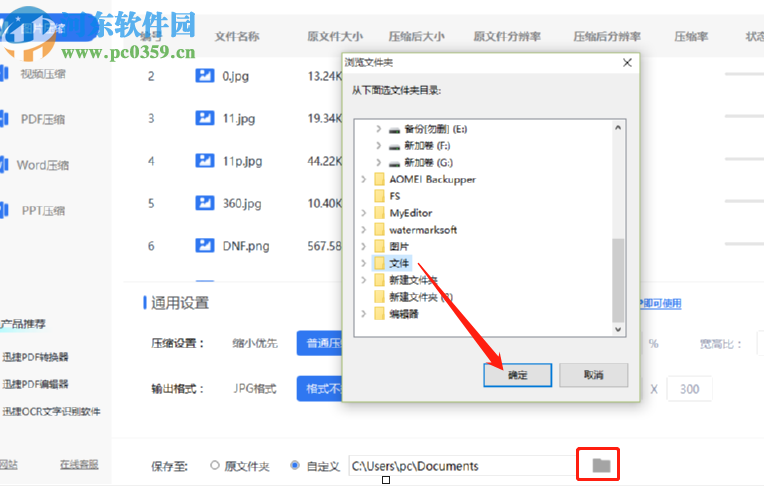 5.根据自己的需求对压缩设置和输出格式都进行选择之后,我们点击界面下方的文件夹图标,然后可以在出现的界面中选择想要输出保存文件的路径。