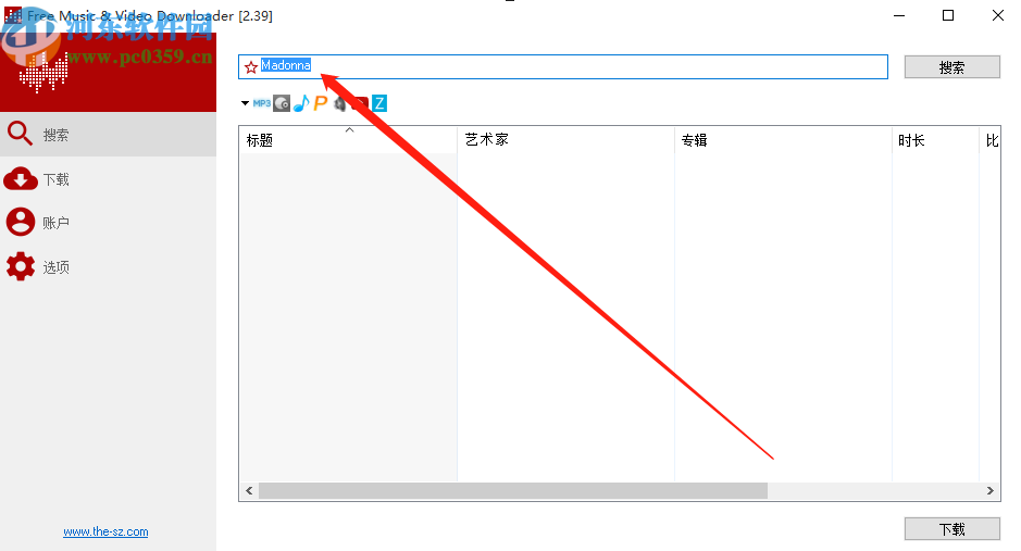 4.回到搜索界面之后我们就可以看到搜索出来的一些音乐文件了,然后我们点击想要下载的那一条音乐信息,点击右下角的下载按钮即可。