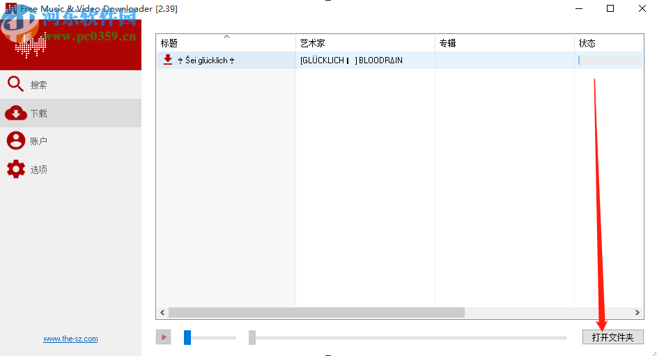 5.点击下载按钮之后就会进入到下载的过程中了,在界面可以看到下载的状态,也就是下载音乐的进度,我们只需要等待下载完成,然后点击下方的打开文件夹按钮就可以查看下载的文件了。