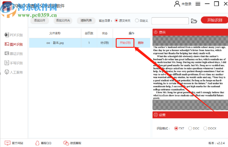 4.选择好想要识别保存的文件格式之后点击界面中的开始识别按钮即可开始识别图片文字的操作。