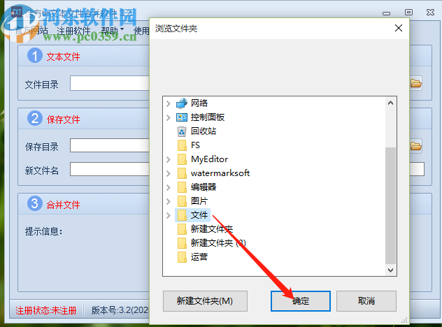 2.打开添加文件夹的界面之后,在这个界面中我们需要选择想要合并的TXT文件所在的文件夹,选择之后点击确定按钮。