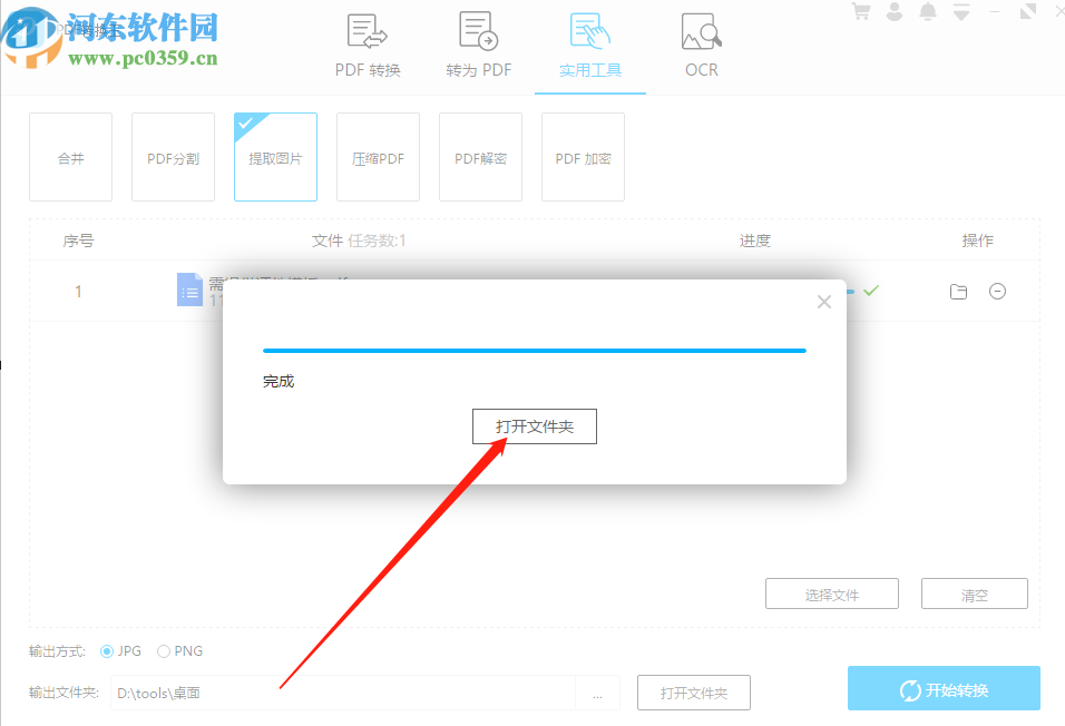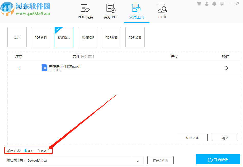 4.选择好输出格式之后我们点击界面右下角的开始转换按钮即可开始提取图片的操作。