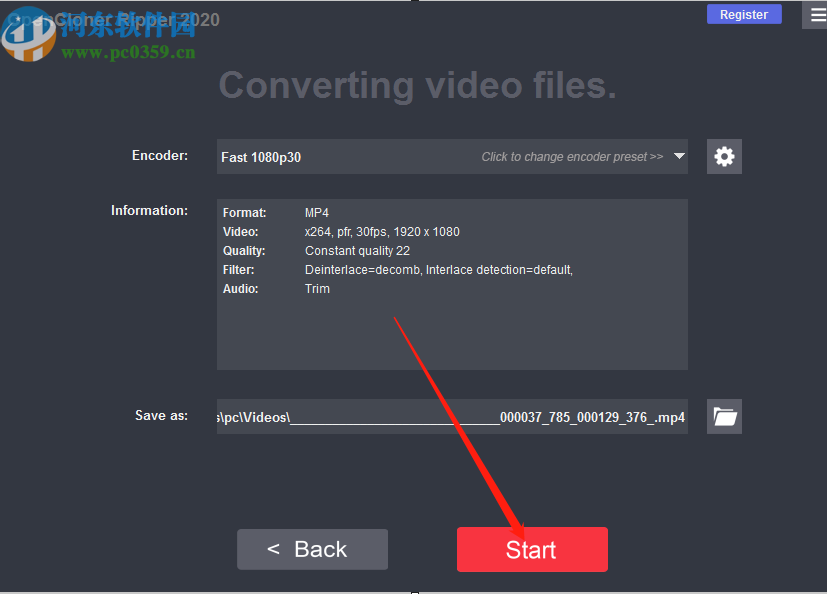 7.点击OK按钮之后最后一步就是在下图所示的界面,点击界面中的Start开始按钮就可以开始剪切视频的操作了。