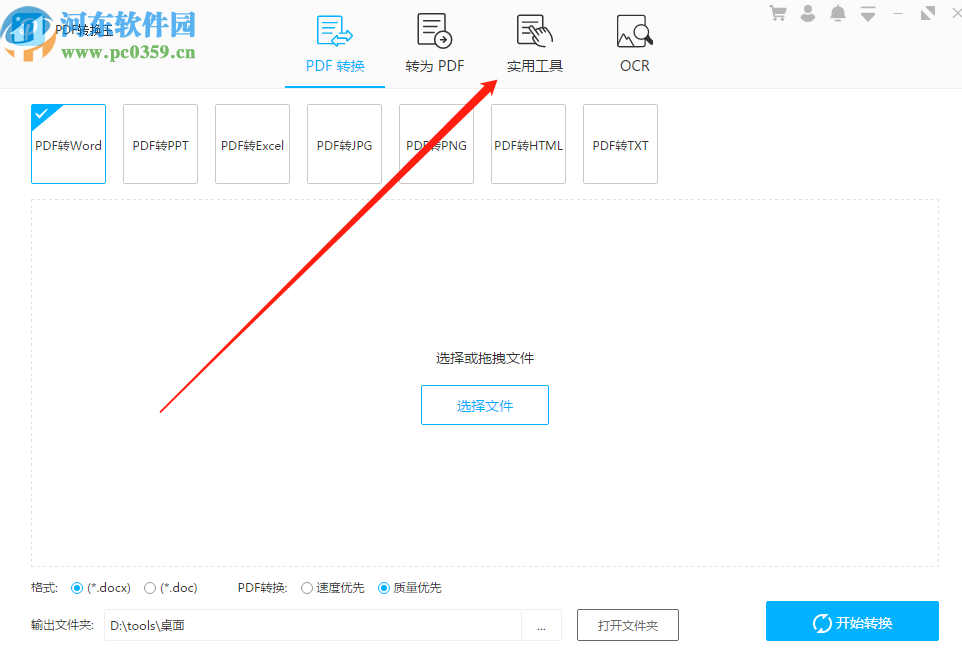 1.首先第一步我们打开软件之后点击界面右上角的实用工具这个功能模块,切换到软件的PDF工具界面。