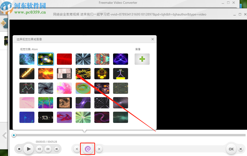 5.选择自己想要添加的视觉效果之后,我们在界面中点击播放按钮可以预览视觉效果,确定使用之后点击右边的OK按钮。