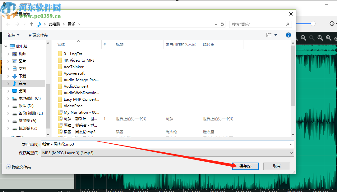 6.最后在音频另存为的界面中,我们设置好保存音频文件的位置,然后点击界面右下角的保存按钮就可以将调整过的音频保存下来了。