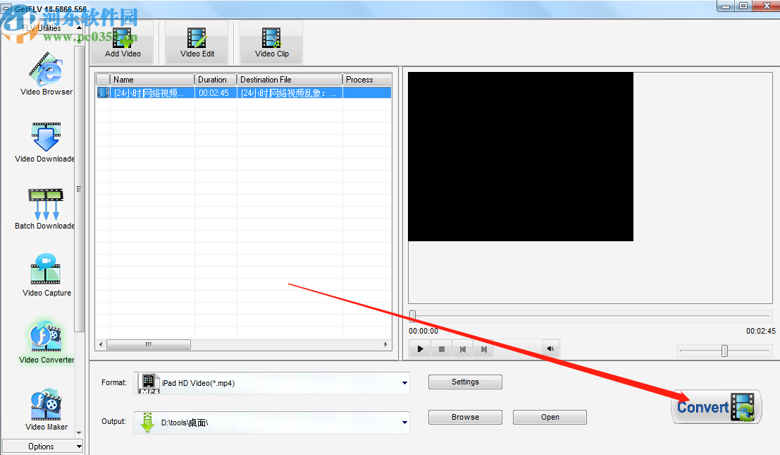 6.最后设置好视频的输出保存位置之后,我们点击界面右下角的Convert这个转换按钮就可以开始转换操作了。