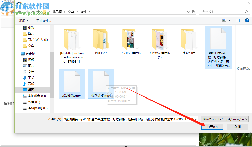 2.点击添加文件按钮之后会打开一个选择文件的界面,我们按住键盘Ctrl键可以进行多选,选中全部想要合并的视频文件。