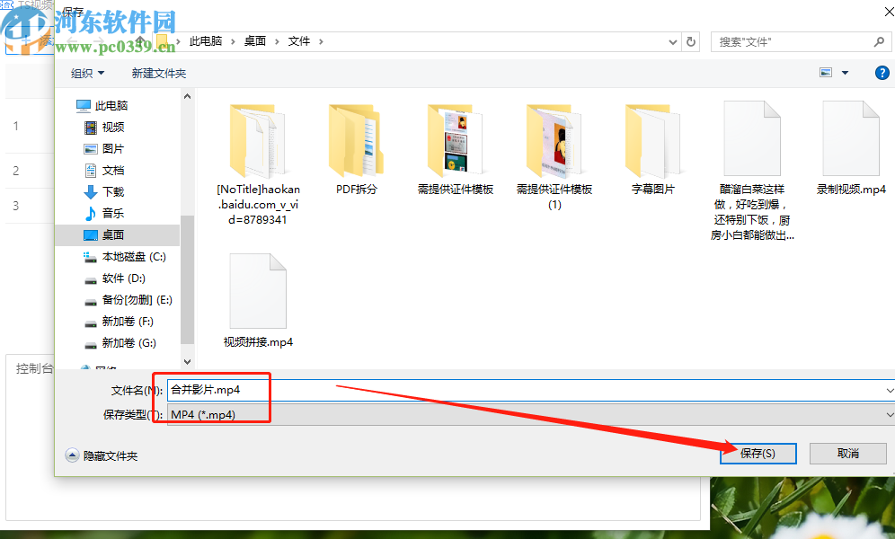 6.选择好视频文件合并格式之后,最后一步设置好合并视频的名称并点击右下角的保存按钮就可以开始合并操作了。
