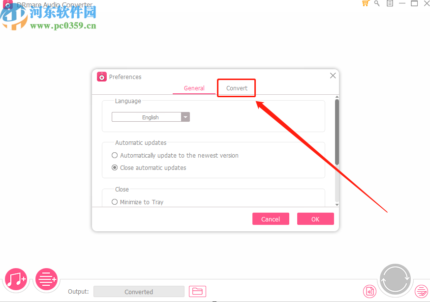 3.点击上一个步骤中所说的选项之后,就会打开软件的设置界面了,然后我们需要点击Convert这个转换选项,切换到转换设置界面。