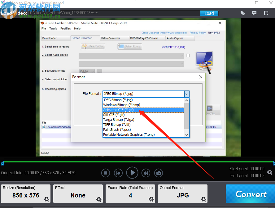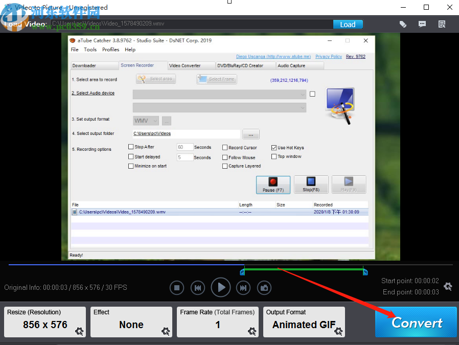 7.设置好转换为GIF的时间段之后,最后一步点击界面右下角的Convert这个转换按钮就可以开始转换操作了。