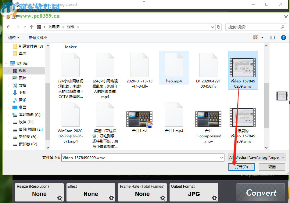 2.点击选择加载文件之后会打开一个选择文件的界面,在这个界面中我们选中目标视频文件之后点击下方的打开按钮。