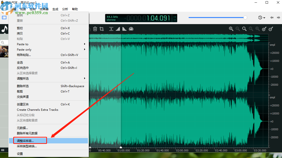 4.点击编辑功能之后下一步在出现的选项中我们就可以看到调整采样率这个功能选项了,接着需要点击这个调整采样率功能。