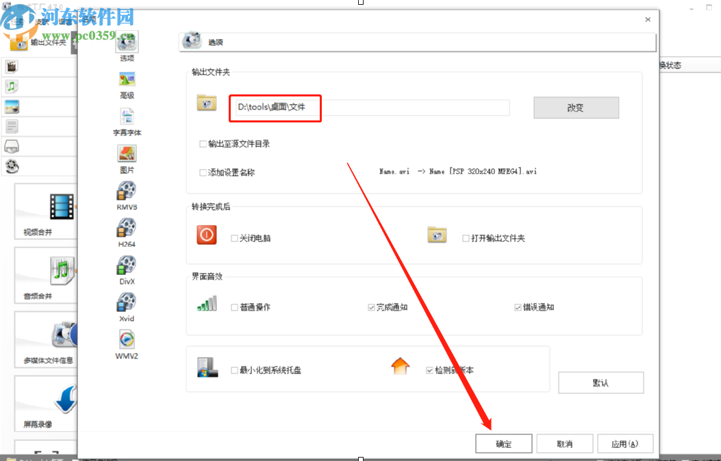 4.点击确定按钮之后就可以看到我们选择的输出文件夹已经发生改变了,最后点击右下方的确定按钮即可保存这个修改操作。