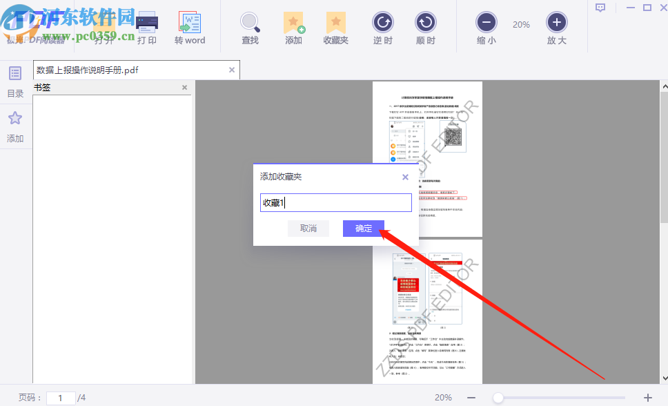 5.最后等到添加成功以后,我们点击界面上方的收藏夹功能,打开收藏夹之后就可以看到自己添加的那一个PDF文件了。