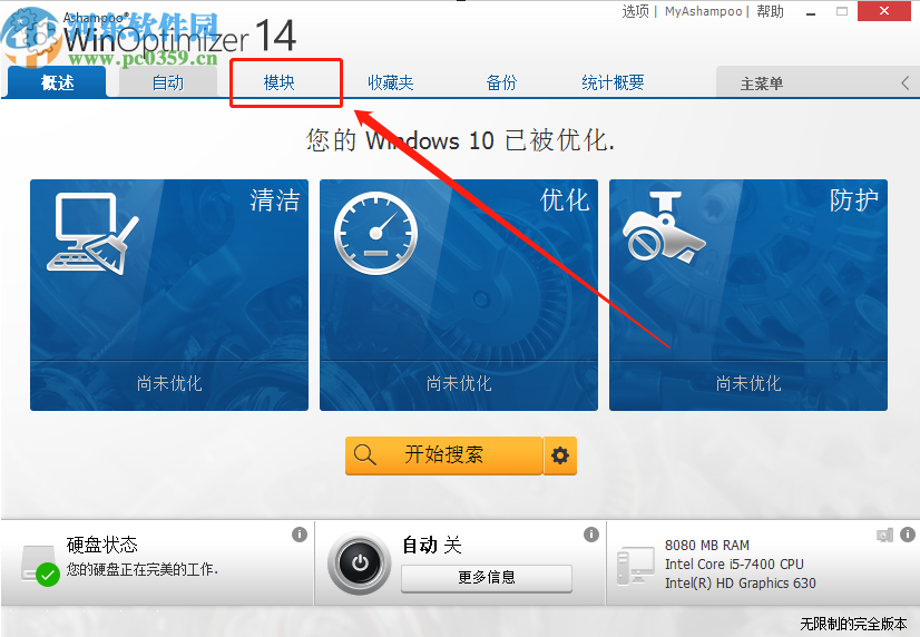1.首先第一步我们打开软件之后在界面上方找到模块这个选项,然后点击切换到其中。