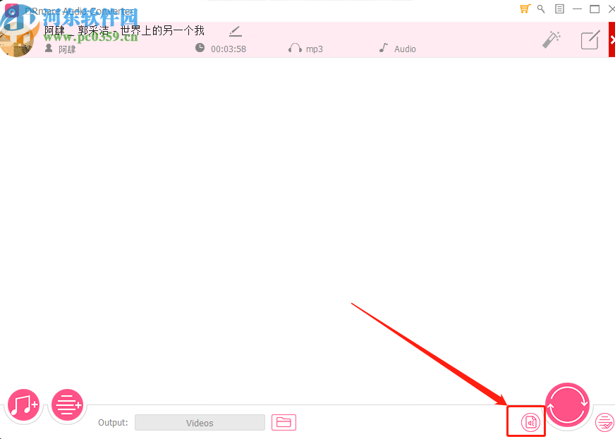 3.点击打开按钮之后音频文件就成功选择进来了,然后我们点击界面右下角转换按钮左边的图标,如下图中所示。