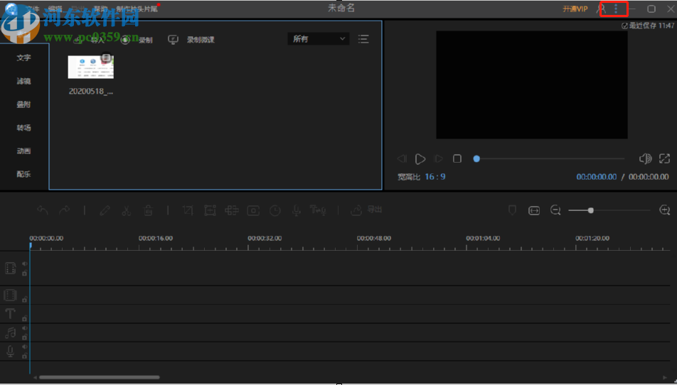 2.当我们进入到软件的编辑主界面之后,点击右上角的三个圆点图标,如下图中框出的位置所示。