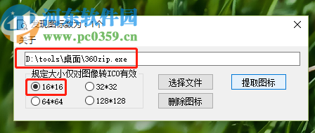3.点击打开按钮之后我们可以看到选择的软件所在路径,然后在下方的尺寸选择位置即可选择想要提取保存的图标尺寸。
