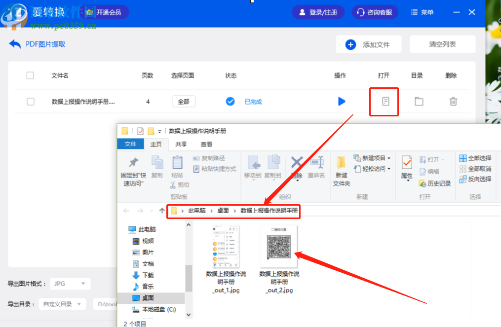 7.最后等到图片提取操作完成之后,点击上方打开选项下的图标,然后就可以打开储存文件的文件夹了,可以看到提取出来的图片就保存在其中。