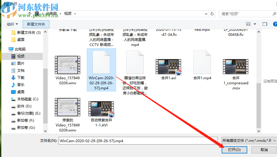 2.点击添加按钮之后,在出现的选择文件界面中,选中目标视频文件之后点击右下角的打开按钮即可。