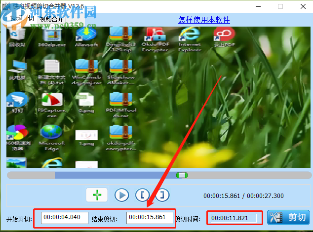 5.剪切的时间选取完成之后,在界面中可以看到剪切时间的长度,如下图中所示,也可以直接在开始剪切和结束剪切位置输入剪切的时间。