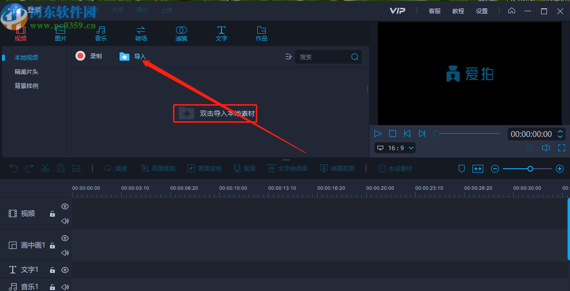 2.点击进入到编辑视频界面之后,我们点击导入按钮或者双击下图中框出的区域,准备导入想要处理的视频文件。