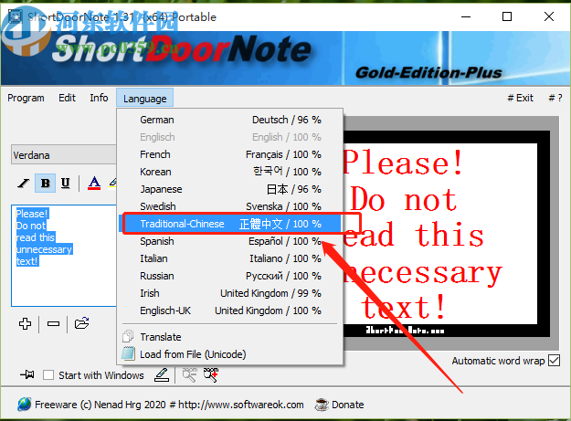 以上就是小编今天跟大家分享的在ShortDoorNote这款软件中将界面设置成中文的操作方法,有需要的朋友赶紧试一试这个方法吧,希望能够帮助到大家。