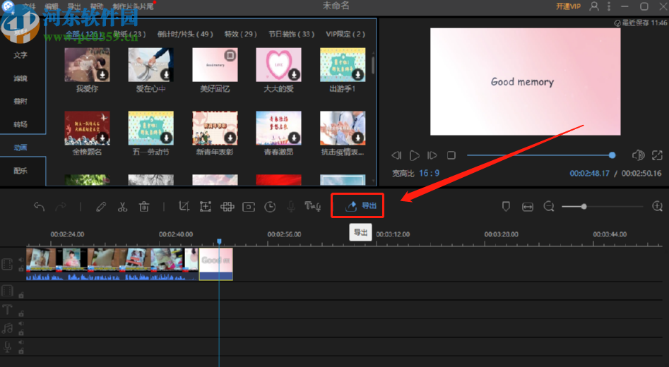 6.之后我们移动播放视频的指针,可以查看动画效果,满意之后即可点击导出按钮导出添加动画之后的视频。